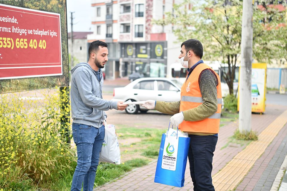 Çayırova belediyesi vefa grubu yaklaşık 45 gündür şehirde çalmadığı kapı,girmediği hane kalmadı.Çayırova belediyesi bünyesinde kurulan Vefa gurubu,ilçede bulunan 44 bin haneye dezenfekte paketi dağıttı.Bunun yanısıra ilçede bulunan 65 yaş üzeri vatandaşların günlük ihtiyaçlarını karşılamak için çalışmalar yapan vefa grubu,sabahın erken saatlerinde işe giden vatandaşlara duraklarda ve servis araçlarında maske dağıtımına devam ederek ilçe halkı tarafından takdir toplamaya devam ediyor.Çayırova belediye başkanı Bünyamin Çiftçi'ninde sık sık çalışmalarına eşlik ettiği vefa grubu ekibinde yaklaşık 150 kişi vardiye sistemine göre hizmet veriyor
