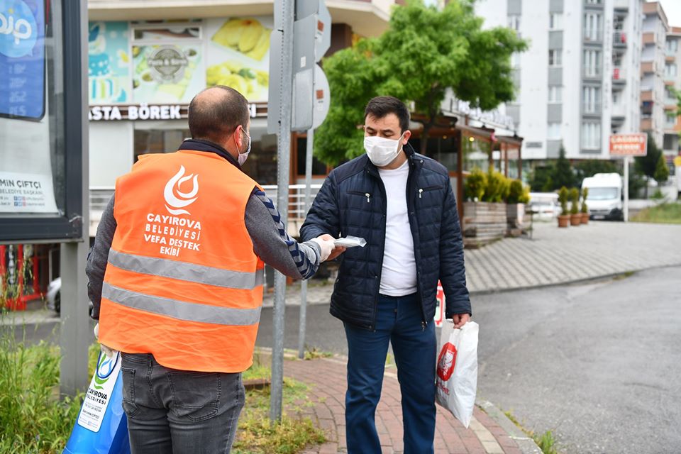 Çayırova belediyesi vefa grubu yaklaşık 45 gündür şehirde çalmadığı kapı,girmediği hane kalmadı.Çayırova belediyesi bünyesinde kurulan Vefa gurubu,ilçede bulunan 44 bin haneye dezenfekte paketi dağıttı.Bunun yanısıra ilçede bulunan 65 yaş üzeri vatandaşların günlük ihtiyaçlarını karşılamak için çalışmalar yapan vefa grubu,sabahın erken saatlerinde işe giden vatandaşlara duraklarda ve servis araçlarında maske dağıtımına devam ederek ilçe halkı tarafından takdir toplamaya devam ediyor.Çayırova belediye başkanı Bünyamin Çiftçi'ninde sık sık çalışmalarına eşlik ettiği vefa grubu ekibinde yaklaşık 150 kişi vardiye sistemine göre hizmet veriyor