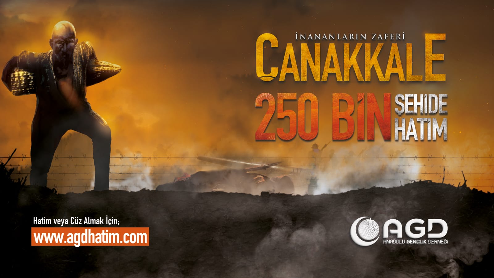 Anadolu Gençlik Derneği (AGD) - Milli Gençlik Vakfı (MGV), Çanakkale Zaferi’nin 106. yıl dönümünde aziz şehitlerimizi, "250.000 Şehide 250.000 Hatim" kampanyası vesilesiyle hatimlerle ve dualarla yad ediyor.