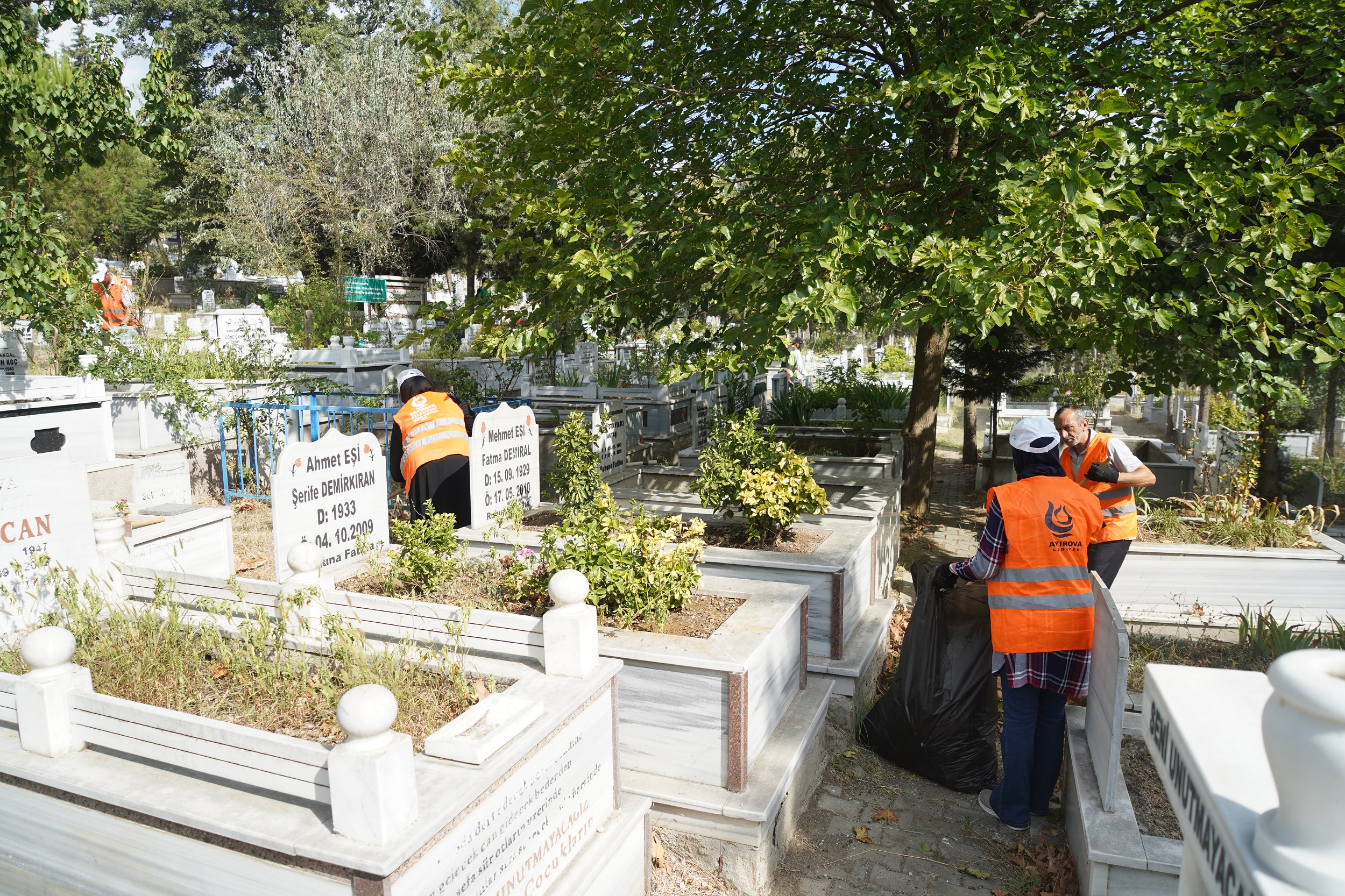 Çayırova Belediyesi Sosyal Yardım İşleri Müdürlüğü’ne bağlı ekipler, Akse Mezarlığı’nda temizlik çalışması gerçekleştiriyor.