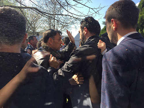Akşener’in konuşması sırasında Ülkü Ocakları Başkanı Melikşah Taşkın ve beraberindekilere müdahale edildi. Yaşanan arbede sonrasında tatlıcı tezgahı dağıldı. Polis bariyerleri kapatarak biber gazı ile müdahale etti. Polis alana giriş ve çıkışları kapattı. Yaşanan arbede polis tarafından sonlandırıldı. Melikşah Taşkın ve beraberindekiler alandan uzaklaştırıldı.