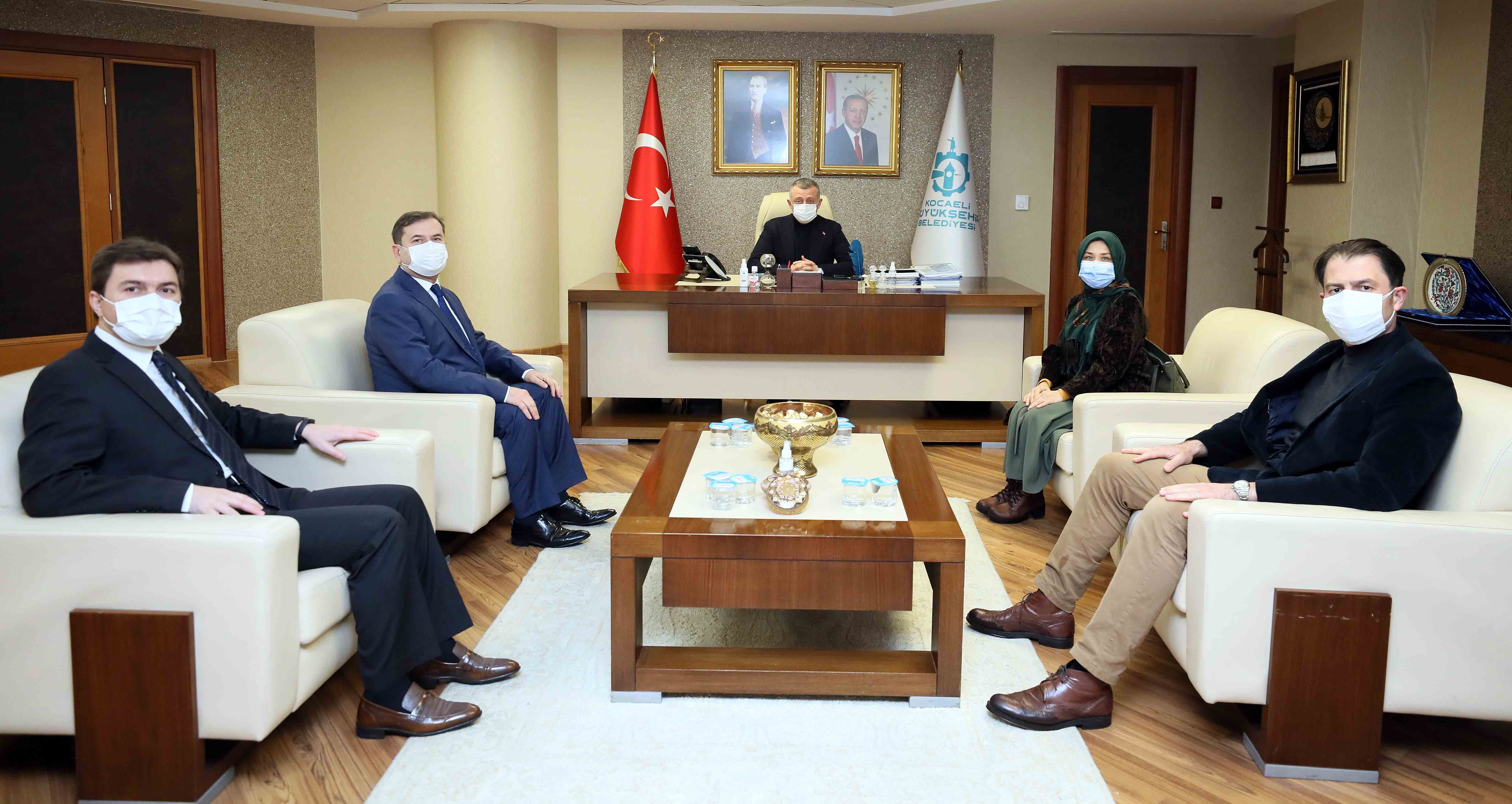 Marmara Belediyeler Birliği ve Kocaeli Büyükşehir Belediye Başkanı Doç. Dr Tahir Büyükakın, Kocaeli Yerel Kültür Platformu Başkanı Metin Şentürk ve beraberinde ki heyeti makamında konuk etti. Görüşmede kentin tarihine ve kültürüne yapmış olduğu çalışmalardan dolayı Başkan Büyükakın’a teşekkür ziyareti gerçekleştirdiklerini söyleyen Şentürk, şehrin yerel kültürü ile ilgili çalışmalarında katkı vermeye hazır olduklarına da dikkat çekti. Üzerinde yaşadığımız Anadolu topraklarının bir kültür ve sanat hazinesi olduğunu ziyaret nedeniyle dile getiren Başkan Büyükakın, “Şehrimizin güzelliklerine, kültürüne ve tarihine dair tüm değerlerine dönük atılacak adımlarda sivil toplum kuruluşlarımızla birlikte çalışmaya devam edeceğiz” dedi.