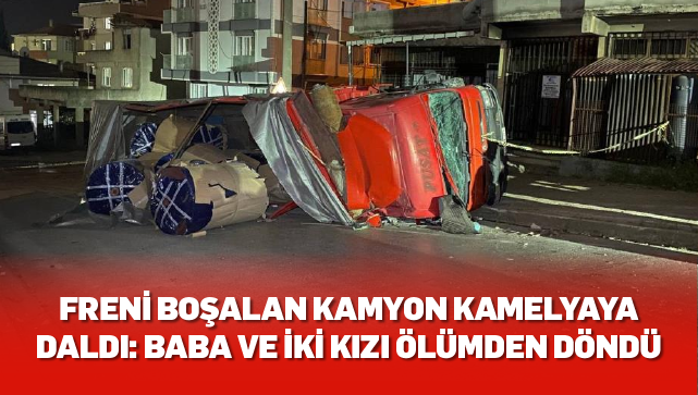Freni boşalan kamyon kamelyaya daldı: Baba ve iki kızı ölümden döndü