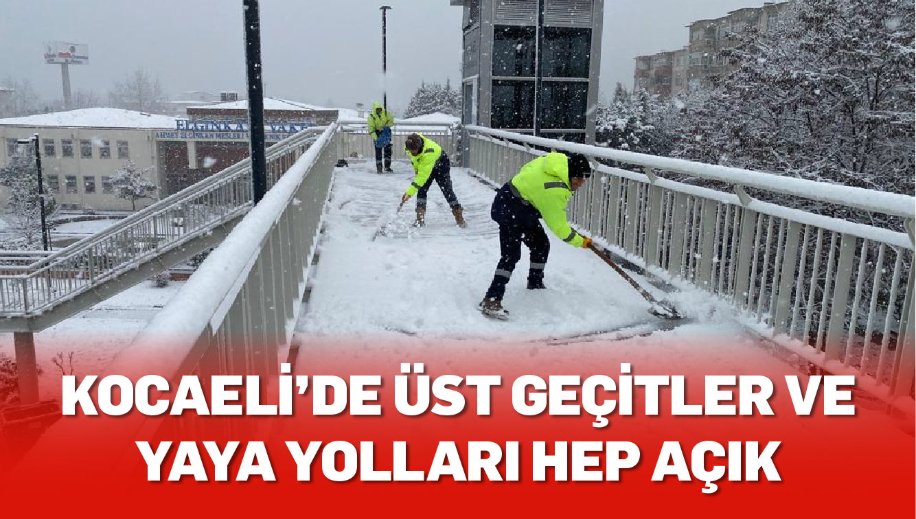 Kocaeli Büyükşehir Belediyesi Park ve Bahçeler Dairesi Başkanlığı ekipleri, bölgemizi tekrar etkisi altına alan yoğun kar yağışında özellikle yayaların olumsuz etkilenmemesi için 7/24 esasıyla gece gündüz demeden çalışıyor. Yaya üst geçitleri, durak önleri ve yaya kaldırımlarında aralıksız çalışma yapan ekipler, tüm bu alanların açık ve yayalar için güvenli kalmasını sağlıyor.