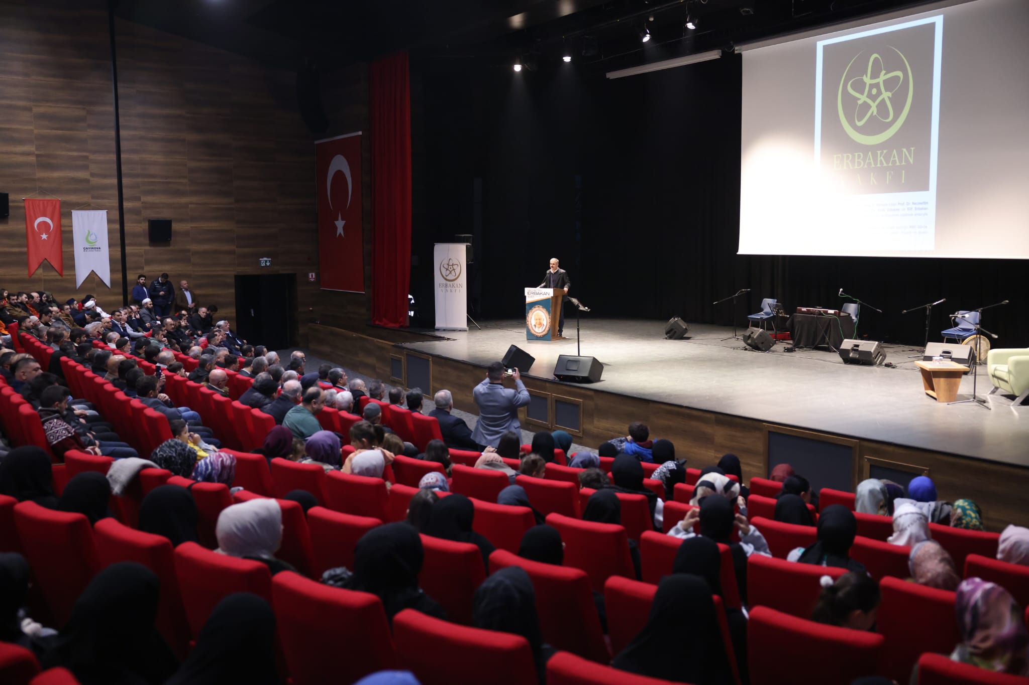 Ezgi ilahi dinletisinden sonra programa onur konuğu olarak sahneye davet edilen Prof. Dr. Ebubekir Sofuoğlu, günün anlam ve önemine binaen misafirlere hitap etti.