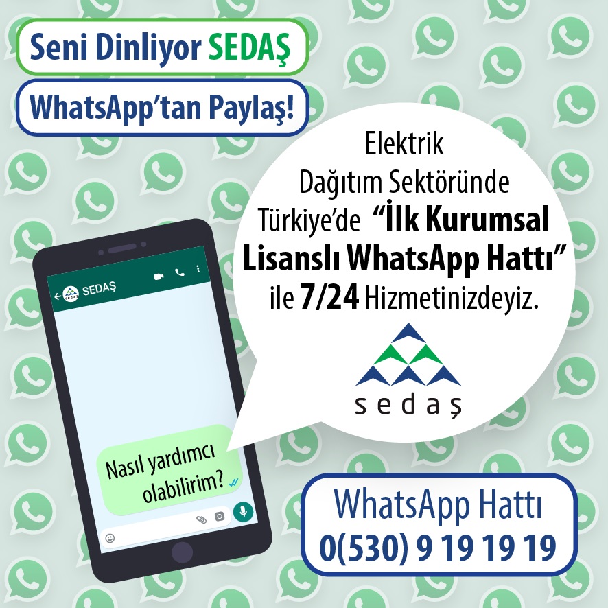 Aboneler, 186 numaralı Müşteri İletişim Hattının yanı sıra; Google Play ve App Store’dan ücretsiz indirilebilen “SEDAŞ Mobil” uygulaması, SEDAŞ websitesi üzerinden ulaşabilen canlı Web Chat hattı ve 0(530) 9 19 19 19 numaralı “SEDAŞ Whatsapp Hattı” üzerinden SEDAŞ’a en kısa sürede ulaşabiliyorlar. Ayrıca; enerji bağlantısı, şebeke, sayaç ve sokak aydınlatmalarıyla ilgili talepler, arıza ihbarları, bakım ve onarım talepleri, kaçak tahakkuk işlemleri ve itirazları www.sedas.com web sitesinde yer alan Bireysel Müşteri İşlemleri kısmından kolaylıkla iletilebiliyor.