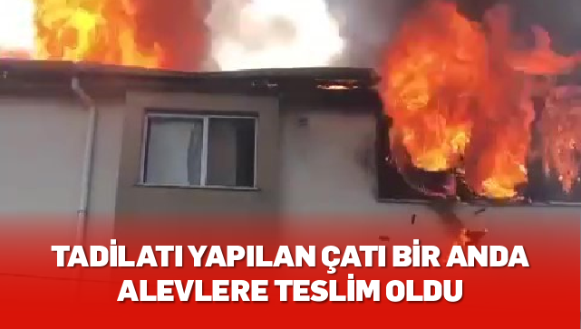 Tadilatı yapılan çatı bir anda alevlere teslim oldu