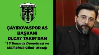 Çayırovaspor As Başkanı ve Takır Otomotiv Sahibi Olcay Takır, 15 Temmuz Demokrasi ve Milli Birlik Günü dolayısıyla bir mesaj yayımladı.