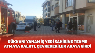 Dükkanı yanan iş yeri sahibine tekme atmaya kalktı, çevredekiler araya girdi