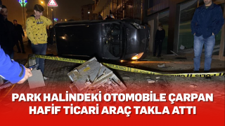 Park halindeki otomobile çarpan hafif ticari araç takla attı