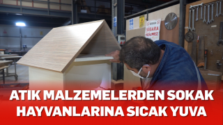 Atık malzemelerden sokak hayvanlarına sıcak yuva