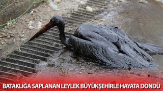 Bataklığa saplanan leylek Büyükşehirle hayata döndü