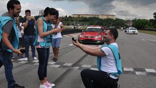 Yarış pistinde evlenme teklifi