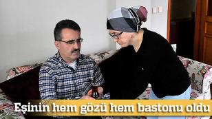 Eşinin hem gözü hem de bastonu oldu