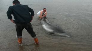 Yunus balığı üç saate kurtarıldı