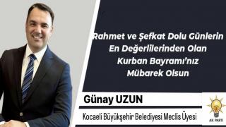 AK Parti Kocaeli Büyükşehir Belediyesi Meclis Üyesi Günay Uzun Kurban Bayramı vesilesiyle bir mesaj yayınladı.