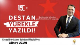 Balkan Türkleri Kültür ve Dayanışma Derneği önceki dönem Genel Başkanı ve Kocaeli Büyükşehir Belediyesi Meclis Üyesi Günay Uzun, 15 Temmuz Demokrasi ve Milli Birlik Günü münasebetiyle bir mesaj yayınladı.