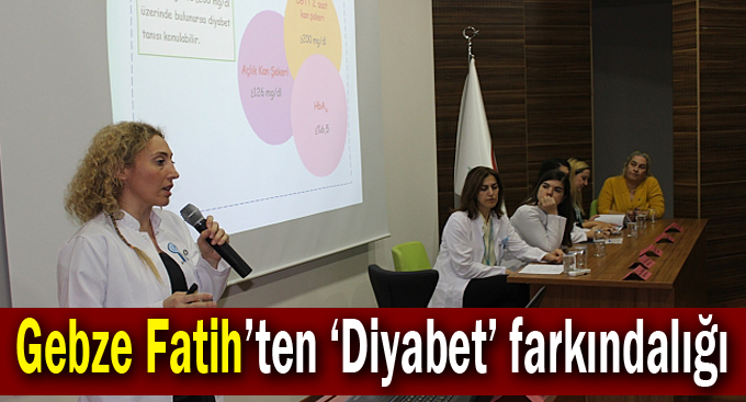 Gebze Fatih Devlet Hastanesi Diyabet Eğitim Birimi tarafından organize edilen konferansa, Gebze Kaymakamı Mustafa Güler, hastane yönetimi, hastane çalışanları ve vatandaşlar katılım gösterdi. Saygı duruşu ve İstiklal Marşı’yla başlayan ve konuşmacılığını İç Hastalıkları Uzmanı Uzm. Dr. Elif Çiftçi Daloğlu, Diyabet Hemşiresi Yasemin Gödekmerdan, Eczacı Nagihan Akçay, Sosyal Hizmet Uzmanı Belgin Emre, Fizyoterapist Oylum Tekeli Özoğlu’nun yaptığı konferensta “Diyabet nedir, diyabetin komplikasyonları, evde kan şekeri takibi, beslenmede nelere dikkat edilmesi gerektiği, egzersiz programı, kendi kendine kontrol ve diyabetik bakımın önemi” gibi konularda bilgiler aktarıldı. Konferans bitiminde hastane yönetimi, önemli bilgiler aktaran konuşmacılara teşekkür belgesi takdim edildi.