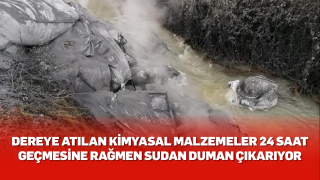 Dereye atılan kimyasal malzemeler 24 saat geçmesine rağmen sudan duman çıkarıyor
