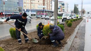 D-100 kuzey yan yolda yeşillendirme çalışması